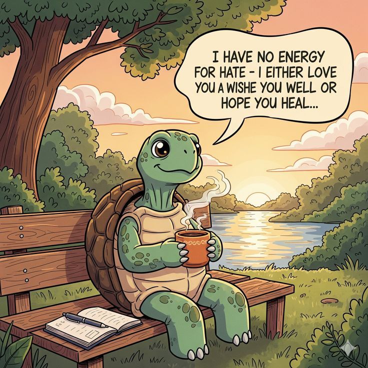 I’ve been hesitant to share this image because of the misspelling. But it’s a turtle drinking coffee, journaling and wishing you well so there’s plenty of upside.
