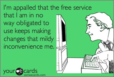 I’m one of the few who doesn’t use Facebook and I have no intention of doing so, but I am also one who doesn’t like change.