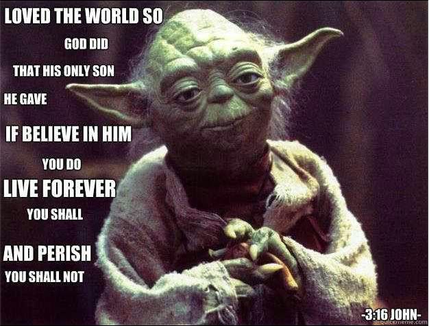And I’ll leave you with John 3:16, Yoda version. Happy Monday!