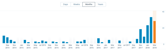 So here’s a head scratcher; Happy Monday #101 was posted back in 2014. Happy Monday posts get a category but nothing else. I quit tagging them after the first few. There are no tags, no key words, no excerpts or descriptions. I don’t do anything to increase their SEO, they are simply shared with my regular readers and Twitter followers. But this post from August 2014 been trending since January. February 2018 was it’s best month ever. Why? No clue whatsoever.