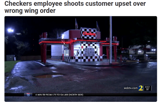 The truth is stranger than fiction. We’ve all heard stories of irate customers starting fights or brandishing weapons at places of business. Here’s a new twist: A Checkers employee shot a customer over a dispute arising from a wrong order. It happened this week at a location near Atlanta. The employee has been fired, you can read the whole story here.