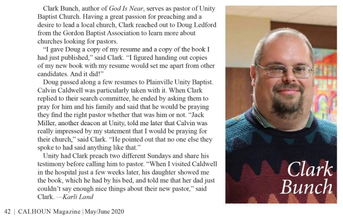 Calhoun Magazine is a local publication that comes out six times a year in my hometown of 10,000 or so people. In the May/June edition they did a second round of the “Humans of Gordon” feature and wouldn’t you know it, I’m a human in Gordon County! Click the image above to open full size in a new window. That’s basically the story of how I became the pastor of Unity Baptist back in 2014.