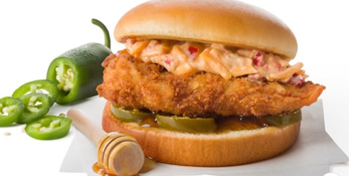 Meet Chick-fil-A’s latest monstrosity, the pimento cheese chicken sandwich with honey and jalapeños for some reason. Restaurant menus are always changing, particularly in fast food with limited time and seasonal options so they can advertise a new thing you need to try. This, um… sandwich… is only in test markets right now. If you live in one of those markets, do the right thing and make sure this doesn’t get a larger roll out.