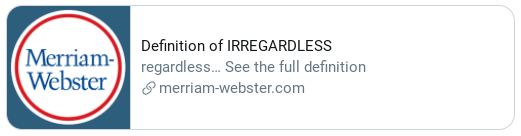 Merriam-Webster has added irregardless to the dictionary. It is a word because when someone says it they know what they mean and so do you. It means regardless but has extra letters and syllables. Click here to learn more about the dictionary maker’s reasoning.