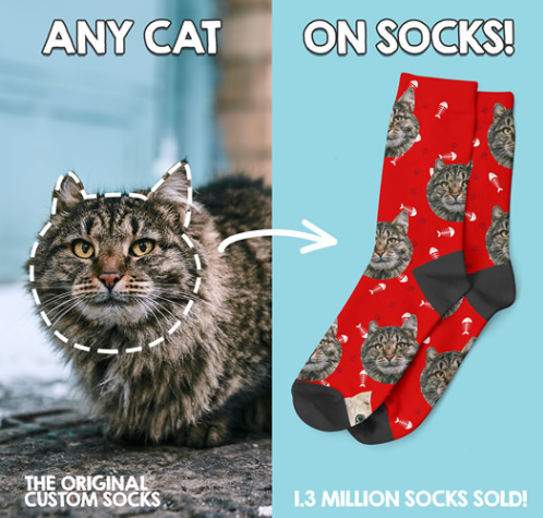 Here’s another holiday gift idea. You can put any cat on a pair of socks. If I had cat named Socks I would put Socks the Cat on a pair of socks, then put those socks on Socks!