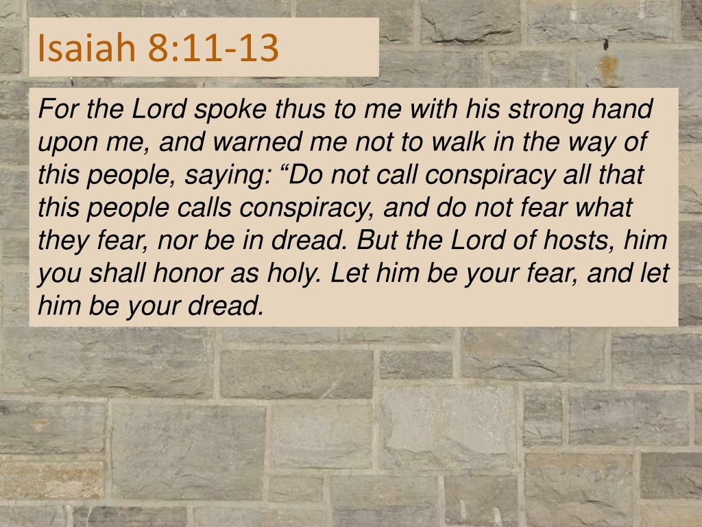 I’ve heard a lot about prophets and prophecy lately but here is a real prophecy from a biblical prophet. I got a lot of positive response when I posted these verses with a short commentary on Facebook last weekend. This graphic didn’t seem to stir the pot any on Happy Monday but perhaps those readers were busy scrolling down to the jokes, idk. I have never tried to follow the headlines and correlate events in the news to prophecy. Some folks become obsessed with finding signs in everything. The thing with prophecy, on a pragmatic level, is that while God has revealed some things to us there is nothing we can do to avoid it or make those events happen quicker. God will do exactly what he has planned to do when he has planned to do it. He isn’t afraid when governments rise and fall, he doesn’t worry about wars breaking out between countries. And we shouldn’t either.