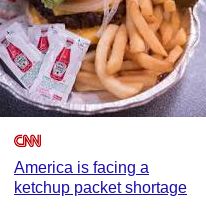 Not a ketchup shortage as much as a ketchup packet shortage. With the increase in drive through and take out there has been high demand for single serve condiment packets. Even restaurants with dine-in service are advised not to have ketchup and mustard bottles, or salt and pepper shakers, on the tables. My very European minded wife would just dip her fries in mayonnaise but this is American and the situation will be that easily resolved for most people. (Europeans were unaffected by the toilet paper shortage as well but that’s a different post for a different day. Also someone else will have to write it.)