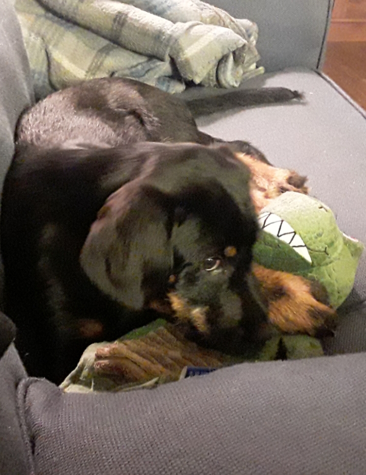 Luna is six months old and when she came to us had not been trained to do anything. She is very bright and has pretty much been house trained in one week. I can’t tell you what kind of dog she is. Her mother is a beagle. She looks like some kind of black and tan hound mix. She very seldom barks but when she does kind of bellows.