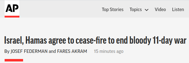 11 day war is a strange way to put it. Palestinians and Israelis have lived in tension for decades, sometimes more violently than others. Hamas will fire rockets, Israel will retaliate, the fire will die down only to blow back up again later. For the time being there is a cease fire. There will continue to be uneasy peace until Hamas starts firing rockets into Jerusalem or other Israeli cities, hiding in holes in the ground and using their families as human shields.