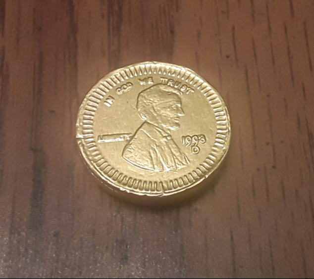 One of the gifts I got on Father’s Day was a bag of chocolate coins. Pictured above is a chocolate coin made in the image of an American one cent piece… in other words, penny candy.