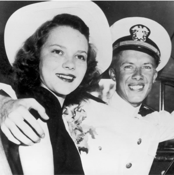 Happy 75th Anniversary to former President and First Lady Jimmy and Rosalynn Carter. The top pic was taken on their wedding day. He has suggested that she accepted his proposal only because she liked the uniform. The Carters have been married longer than any first couple in American history. George H.W. Bush and Barbara were married 73 years at the time she passed away, and he followed her a short time later. At age 96 Jimmy Carter is the longest lived president on record and the only one to still be alive 40 years after leaving the White House.