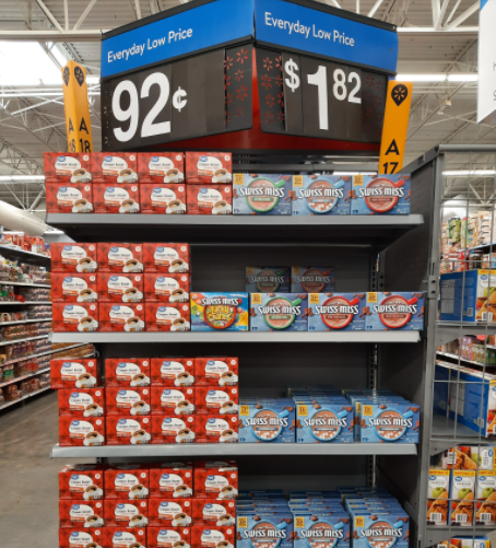 Speaking of Walmart… This endcap display has Walmart brand K-cup pods and Swiss Miss hot cocoa on sale for 92 cents and $1.82 respectively. Our local Walmart store posted this on their Facebook page. I did not confirm this price when checking out but did look at the receipt when I got home. Those 92 cent coffee pods rang up at $3.96. I normally drink a darker roast but at 92 cents for 12 pods, I mean come on. I went back to Walmart where a very nice older lady in customer service had bought the same thing the night before. Although she reported the error nothing had been done about it, but she gladly refunded me the difference, $6 and change for the two boxes I had purchased.