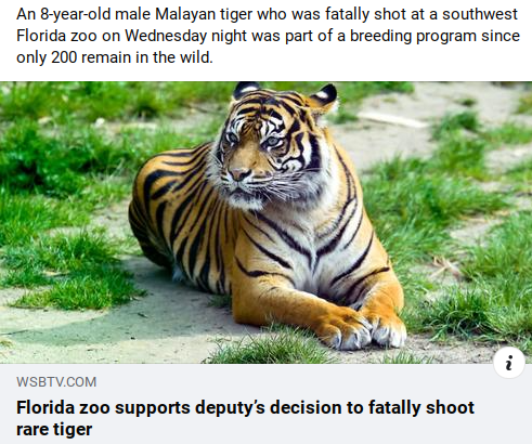 A janitor put his hand into the enclosure, in an attempt to either feed the animal or pet it. The tiger clamped onto his arm and wouldn’t let go. The young man, 26 year old River Rosenquist, managed to call 911 himself and when deputies arrived he pleaded with them to shoot the animal. The cleaning company is contracted to clean restrooms and the gift shops, not animal enclosures. Rosenquist breached a barrier to get close enough to even reach inside the bars in the first place. Charges are still being considered for Rosenquist and this would not be his first criminal offense.