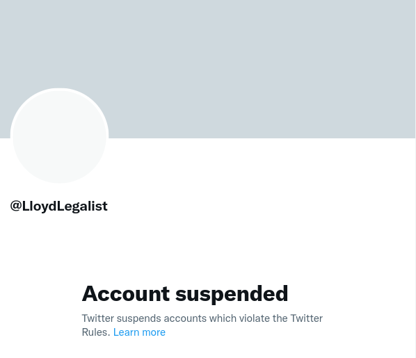 Twitter icon Lloyd Legalist has been suspended. In confirming this report first hand I did find some other accounts, such as Lloyd Legalist’s Lawyer and…