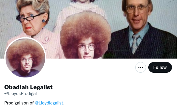 … the Prodigal Son of Lloyd Legalist. These didn’t just pop up but have been around for years. My suspicion is that they are all functions of the same person but don’t put Twitter wise to it all.