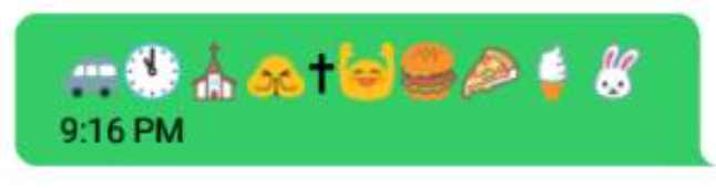This text message describes what we’ll be doing tomorrow. If you can work it out great, it not I will summarize: have a happy Easter!