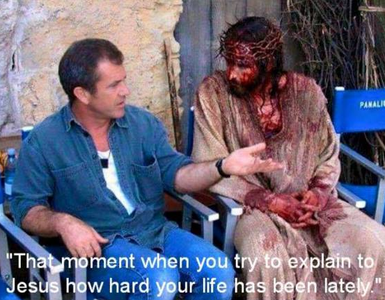 That’s really a behind-the-scenes look at director Mel Gibson Jim Caviezel on the set of The Passion of the Christ. The meme is also funny and an important reminder. And it comes up every now and then because Facebook memories shows it to me every year.