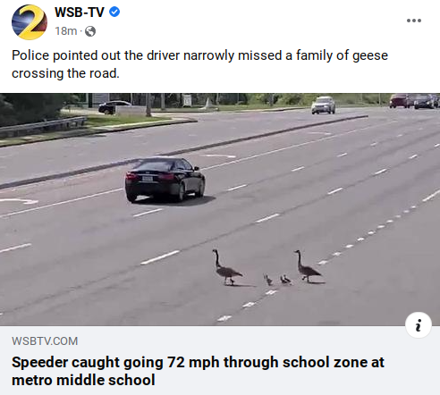 Here’s your feel good story of the week. I’m not going to link anything but no children or animals were harmed in the making of this headline. I don’t know about the entire metro area but I can tell you that in Smyrna geese families are definitely a thing.