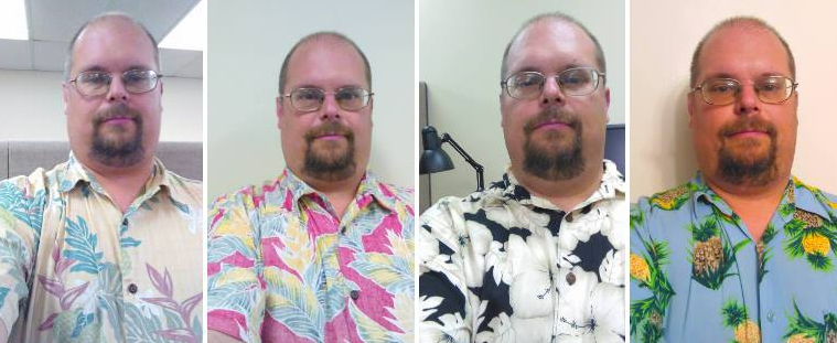 Speaking of Hawaii – These pics are from this week in 2016 which I designated Hawaiian shirt week. I have never been to Hawaii but the two shirts on the left my mother-in-law brought back from Hawaii for me. The shirt all the way on the right (speaking of pineapples) I bought in California… at Walmart.