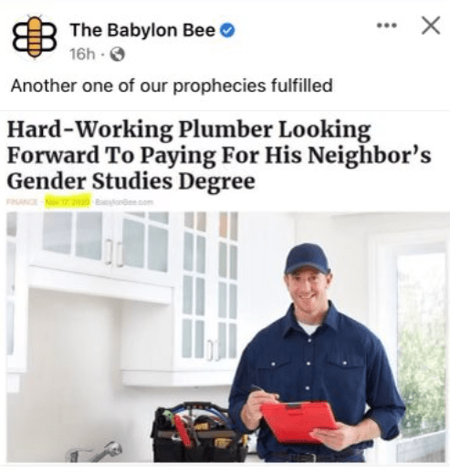 Mike Rowe shared this Babylon Bee headline from two years ago. He laughed at the time because it was satire. He says he isn’t laughing anymore. He feels sad for taxpayers, he feels sad for the plumber… and he feels sad for the neighbor with the gender studies degree that can’t find a job. I need to shorten it up here and write a full post on this topic. If nothing else I need to respond to Jimmy’s Table podcast.