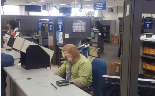 And this guy wins best costume. Specifically he is dressed up as Flash Slothmore from the film Zootopia. Even if you don’t know who that is, this guy worked all day at the DMV as a sloth.