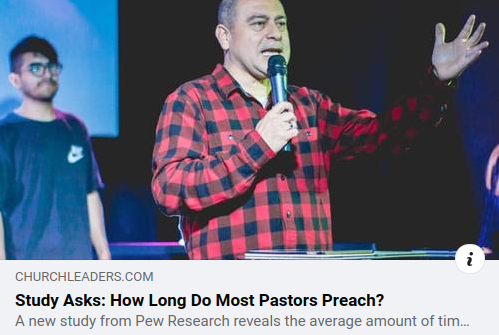 Short version: Preachers average between 14 and 54 minutes. Long version: it depends on the faith tradition how long an average sermon lasts. The Catholic homily averages 14 minutes; mainline Protestants, such as united Methodists, can expect an average of 25 minutes. Evangelical Protestant sermons average 39 minutes and historically black Protestant churches average 54 minutes. Here is the article at Church Leaders .com. Words and phrases one can expect to hear and how much Bible is referenced are also discussed, as well as how the research was conducted. There are some quotes from preachers you should recognize. My goal is usually around 30 minutes, plus or minus 5 minutes doesn’t bother me. If I pass the 40 minute mark I will try harder to not let that happen again the next week.