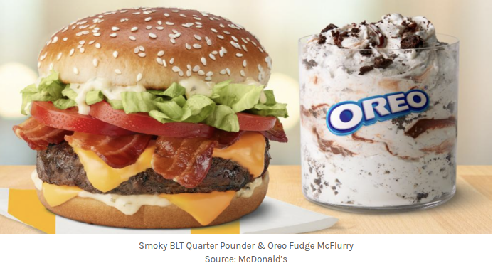 “McDonald’s launches new sandwich for the first time in 15 years.” That’s what the headline said but it’s not a new sandwich as much as a variation of the classic quarter pounder which they come up with all the time. The Oreo Fudge McFlurry sounds good but I bet the ice cream machine is broken. Let me know if you try either of these. My friend Dudley likes his bacon in the milkshake.