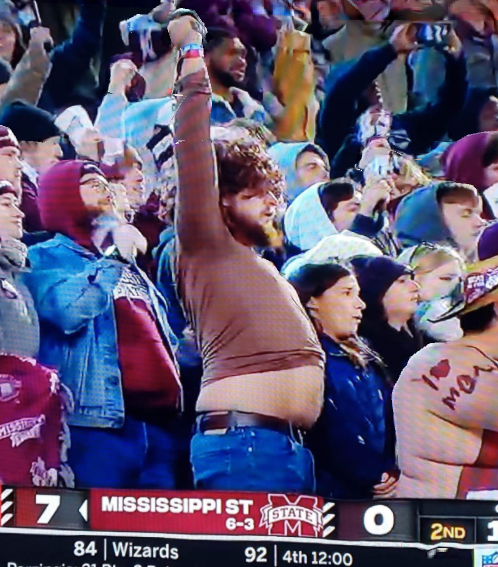 I need more cowbell. College football fans watching Georgia play at Mississippi State last week didn’t get much of a contest but were treating to this Will Ferrell look-alike spotted in the stands. UGA Bulldogs play Kentucky this afternoon, a team with a 6 – 4 record so far this season. Remember this guy though? He was right about one thing, they did lose to Tennessee.