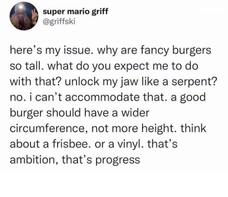 This. Yes, absolutely. I know Burger King is not the kind of “fancy” this post is talking about but the width of the Whopper is the best thing it has going for it.