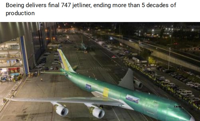 That’s actually a cargo plane, the last passenger 747 was delivered to Korea Air in 2017. Hailed as the first jumbo jet Boeing’s 747 entered service for Pan Am in 1970. At that time the 747 was twice the size of the most popular 707’s and DC8’s, workhorses of the airline industry. The Boeing 777 entered service in 1995 and the current 777X series will be the twin engine jet aircraft that dominates the industry in coming years.