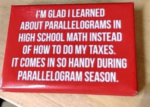 You can do taxes. You were taught in middle school, maybe elementary school, how to add subtract, multiply and divide. You were taught to read and follow directions. If you can do basic math and follow directions you should be to do your taxes without a whole entire class on filing taxes. Now, having said that… if there were a class that taught filing taxes, following the kind of cooking directions that come on food packages, change a flat tire and maybe reset a tripped circuit breaker, that would be okay too.