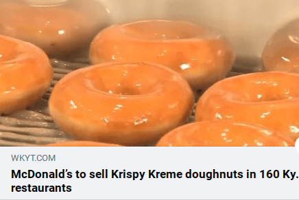 McDonald’s is selling Krispy Kreme at 160 restaurants in the Lexington, KY area. They must have given up on their ice cream machines completely.
