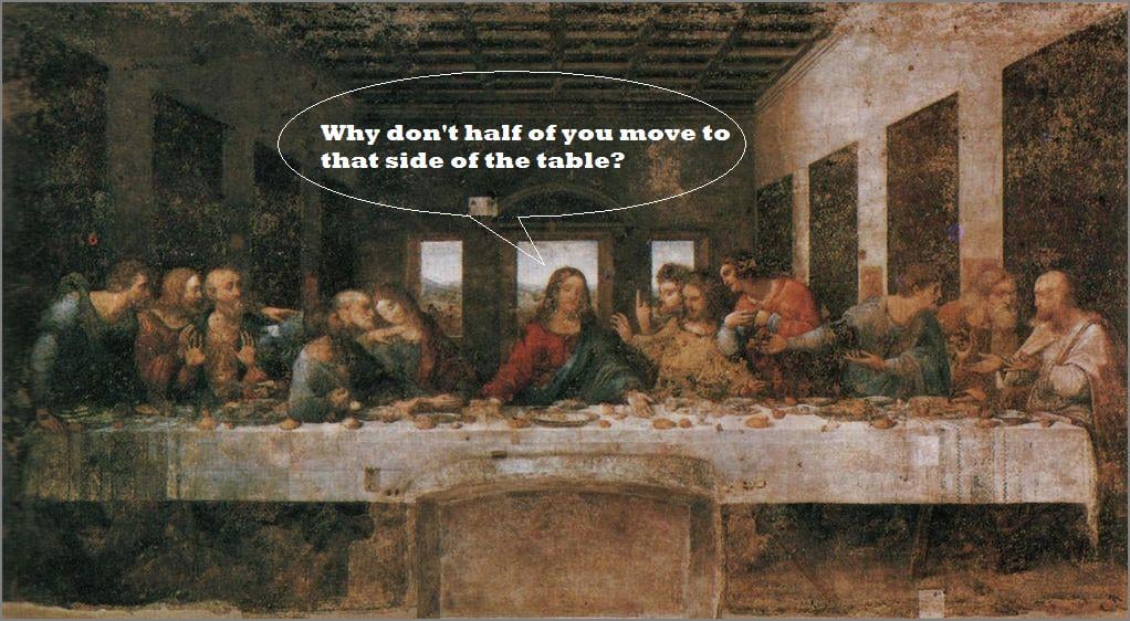 The Last Supper was painted in the mid 1490’s. It was not uncommon to place characters of Bible stories in contemporary settings. There is a famous work that depicts Mary holding the baby Jesus sitting next to the Holy Roman Emperor. The people at the time knew the works were not historically accurate. Very few people were literate and the art of the time, such as oil paintings and stain glass windows, illustrate the people and events of the Bible. It took Michelangelo five years to paint the 343 figures on the ceiling of the Sistine Chapel. There is value to studying Medieval art just keep in mind that’s it’s only around 500 years old and depicts events from 2,000 years ago. Di Vinci and Michelangelo are closer to our time than the first century A.D.