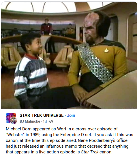 While we’re on the subject – I was surprised to learn that Webster was still on in 1989. That show got two seasons in first run syndication. Season 6, episode 25, has Webster on board the Enterprise D sharing a few scenes with Michael Dorn as Lt. Commander Worf. You can watch the full episode on YouTube. There is also a Reading Rainbow episode that I remember from back when that shows LeVar Burton going behind the scenes and explaining how the show is made. The Webster episode takes place in universe and the actors never break character.