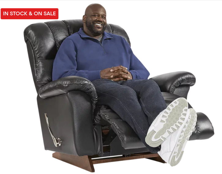 Shaquille O’Neal has been the corporate spokesperson for Buick, Epson printers, General car insurance, Gold Bond powder and Icy Hot. He not only makes ads for but owns a Papa Johns franchise. Add Rooms to Go to the list. Shown above is the Shaq Chair by La-Z-Boy, available exclusively at Rooms to Go. He also has an exclusive line of office furniture at Office Depot. Is there anything this man can’t sell?