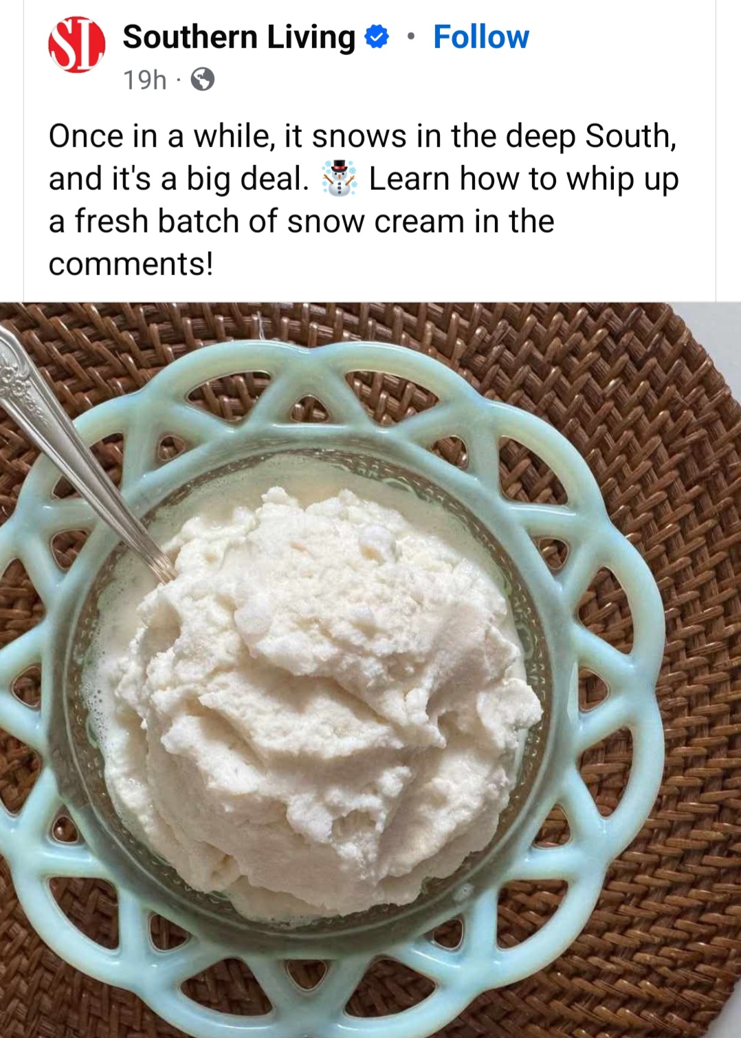 We had some winter weather last week and might get some more next week. Much of the country has been and will be affected by the polar vortex; they are expecting snow in Louisiana. Just a friendly reminder that when you add milk, sugar and a little bit of vanilla flavoring to snow you get snow cream. Snow ice cream sounds silly as there is no such thing as that.