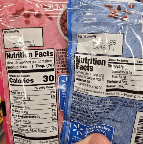 Reduced sodium bacon pieces have more sodium than regular bacon pieces. Now if you’re reading national labels out of concern for your health, then you are probably not eating bacon pieces in the first place. But you gotta admit this is a head scratcher. I did not discover this fact on my own but thanks Internet, you never cease to make us question humanity.