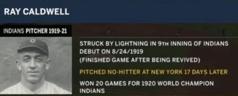 Today they delay the game one hour if you can hear thunder from the ball park. Can you even imagine continuing to play a game after a player was struck by lightning?