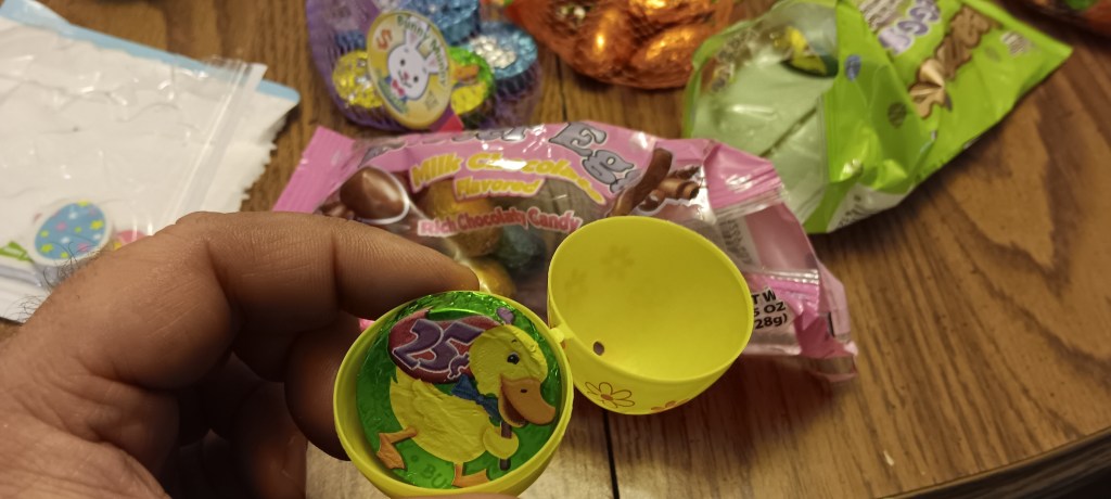 I know sometimes we look like rock stars on stage when were mic’ed up and have projection going or musicians playing, but the pastor is not always the center of attention. (Tongue in cheek, don’t take everything I say seriously, especially on Saturday.) Sometimes there are hospital visits or private meetings with families at the funeral home. The hours are often not 9 – 5 or even 7 – 3. And sometimes you spend the afternoon putting little chocolate coins and such into plastic eggs. I don’t mind so much.