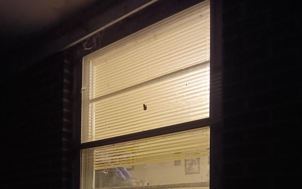 We came home to find this little guy hanging out last night. There are lots of flying insects hovering around that window because of the lights inside. It almost looks like he is giving us the two-finger peace sign. So that makes him Peace Frog, IRL.