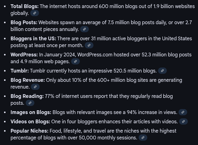 The State of Blogging – I sometimes lament that blogging is not what it used to be. It could be that blogging is alive and well and those of us that were early adopters are just not seeing the traffic we used to. According to the information above, there are 31 million active blogs in the US with “active” defined as putting up at least one post per month. 31 million sounds like a lot but it’s only 10% of the American population. At the same time 77% of internet users regularly read blogs. It is also a gross exaggeration to say that every person alive today has their own podcast. Apple lists a little over 2.7 million valid podcasts. Spotify claims to offer over 6 million podcast titles but many of those may be inactive or have only one episode. There are over 158 million podcast listeners in the US (over 500 million worldwide) so the market is not over-saturated.