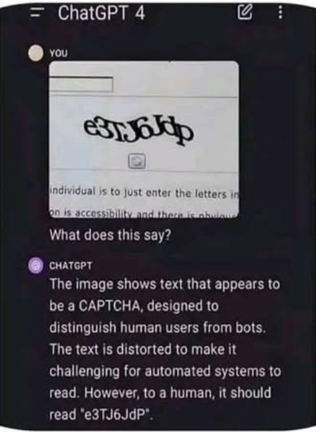I would have trouble with that CAPTCHA. Artificial Intelligence has a ways to go. We’ve all seen wrong information returned in search results or creepy pictures usually with too many fingers (or arms, legs, etc). But in this case the AI does a better job of proving it’s human than I could. Websites have been moving away from using CAPTCHA; have you had that “test” where all you have to do is click the box that says “I am human?” How could bots mess that up? Well, see, it’s not about clicking the box. Your mouse movements are being tracked across the screen so it knows how to distinguish the human vs. technological efficiency how we get to he box and click it. Of course it won’t take long to figure out how to fake that, too.