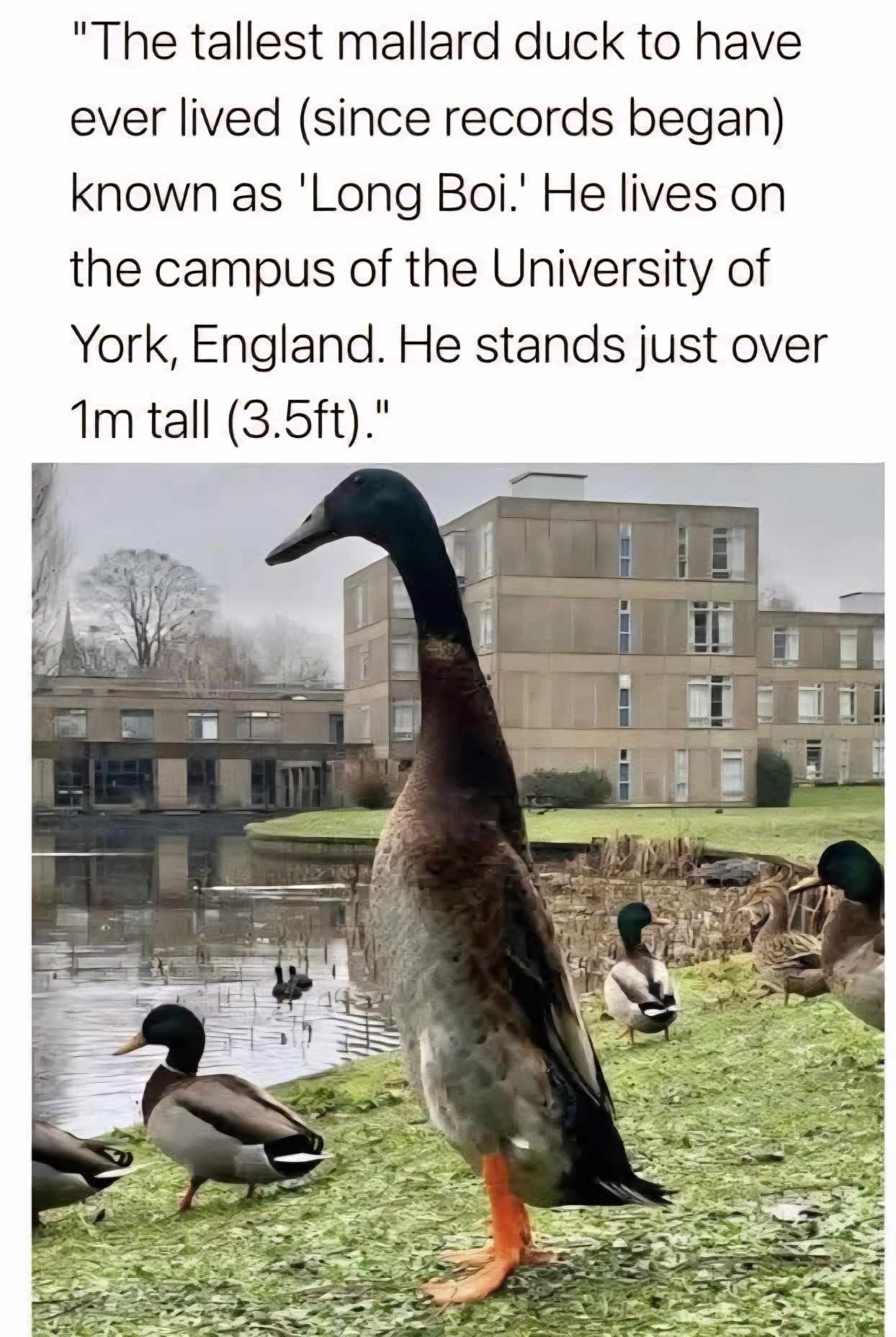 Rest in peace Long Boi. When I checked the authenticity of these facts I learned that the information is true but outdated. Long Boi lived on the campus from 2018 to 2023 but has since passed away.