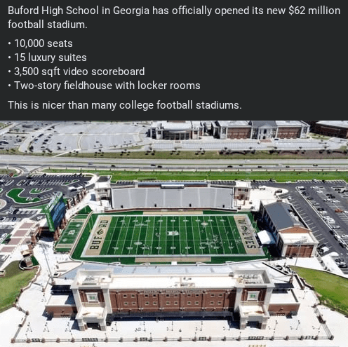 High School football season is upon us. What could be more demoralizing for your opponent that to come play in your new $62 million stadium. That’s high school football mind you. At a rate of one penny per second it would take 196 years to collect $62 million.