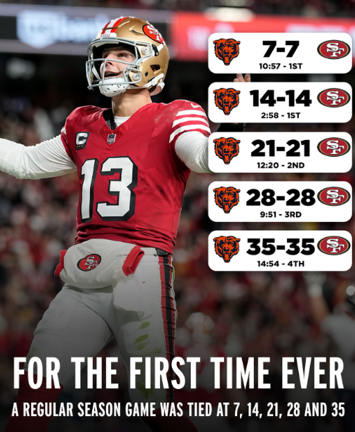 I cannot confirm this was the first time ever but those were scores during the 49ers/Bears game this weekend. The 49ers went on to win in overtime. The real games will be Wednesday and Thursday this week as the college football playoffs get good. Indiana vs. Alabama on New Year’s Eve, Georgia vs. Old Miss on New Year’s Day.