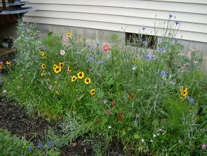 Pictured at left are my wife’s wildflowers growing in front of our house. I’ll get back to those in a minute.
