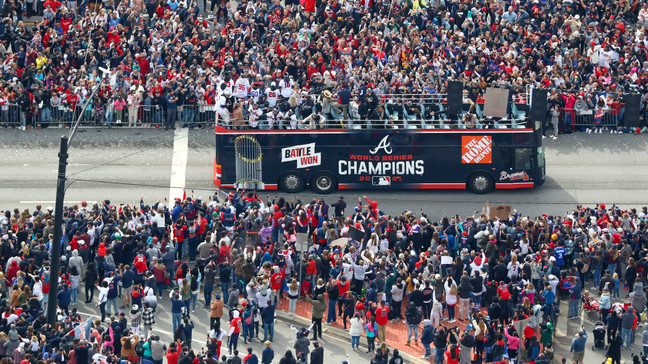 The Atlanta Braves victory parade attracted hundreds of thousands of fans. Staged in two locations, the parade began in downtown Atlanta at noon and ended at Truist Park in the Battery at 3 PM. Then the program started, followed by concerts and a party that lasted well into the night. You probably know the Braves won the World Series in 6 games, shutting out the Houston Astros 7 – 0 at Minute Maid Park Tuesday evening. It’s the Braves second World Series title since moving to Atlanta in 1965. They made a remarkable worst to first run in the National League West Division (it’s a long story) in 1991 and won the World Series for the first time in Atlanta in 1995.