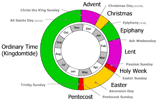 If you Google ordinary time you will get a lot of results from Catholic sources and relating to the Roman Catholic Church. Many Protestant churches find they benefit from a Christian Calendar, like the one shown above, even without following a strict lectionary throughout the year. Continue reading