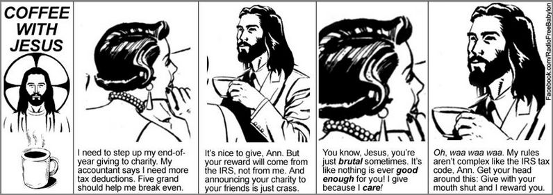 Coffee with Jesus is a comic strip produced by Radio Free Babylon. They’re for people with a sense of humor and this one helps teach an important lesson.